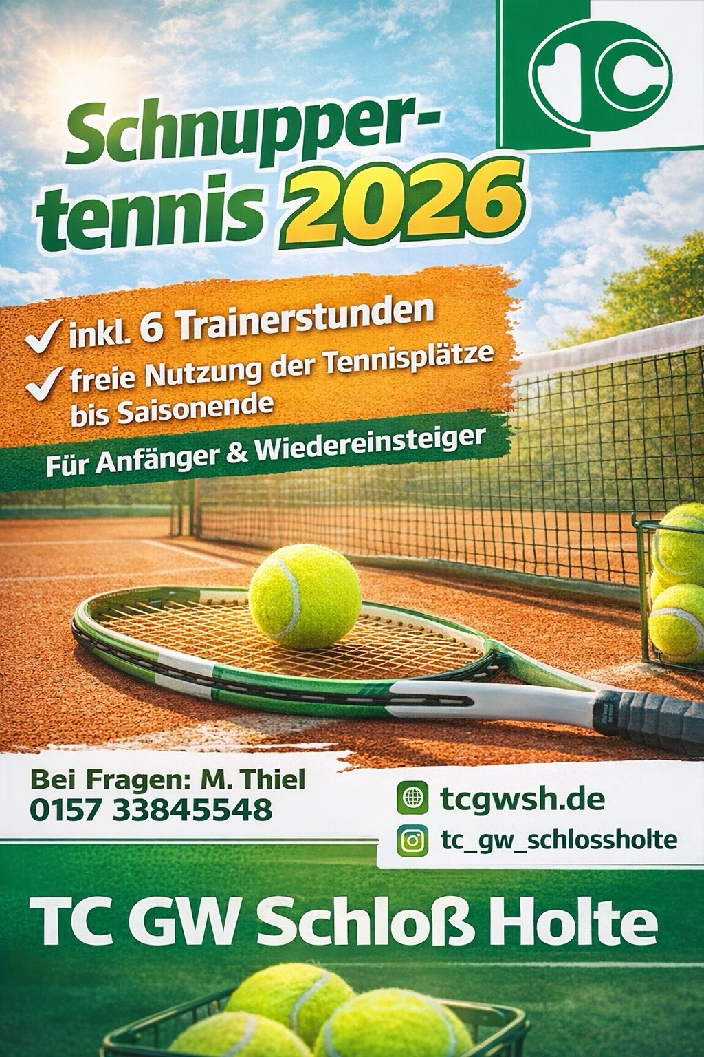 Auch in 2026 besteht wieder unser Schnuppertennis-Angebot für alle, die unseren Verein noch nicht kennen: